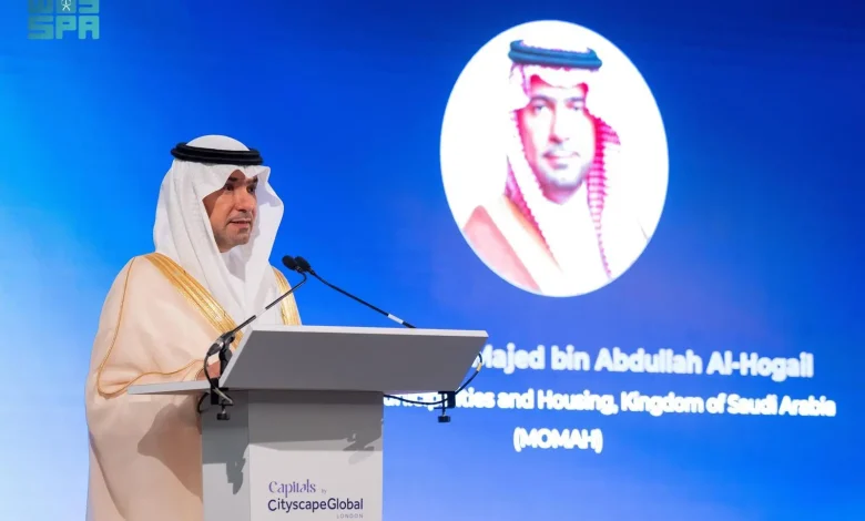 جاء ذلك خلال كلمة معاليه في ملتقى “كابيتالز لندن”، الذي عُقد ضمن برنامج المستثمرين العالمي المصاحب لمعرض “سيتي سكيب العالمي” برعاية وزارة البلديات والإسكان، وبمشاركة أكثر من (100) شركة دولية وصناديق استثمارية تدير أصولًا تفوق قيمتها (4.4) تريليونات دولار.