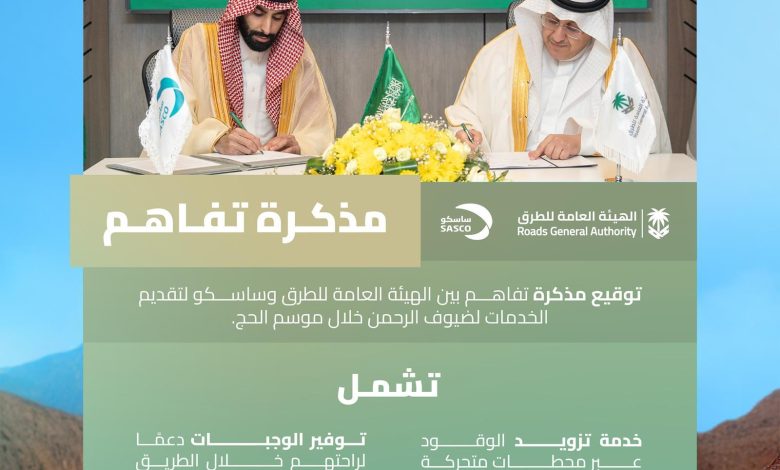 “هيئة الطرق” و”ساسكو” توقّعان مذكرة تفاهم لتوفير محطات متحركة على طريق الهجرة لخدمة ضيوف الرحمن