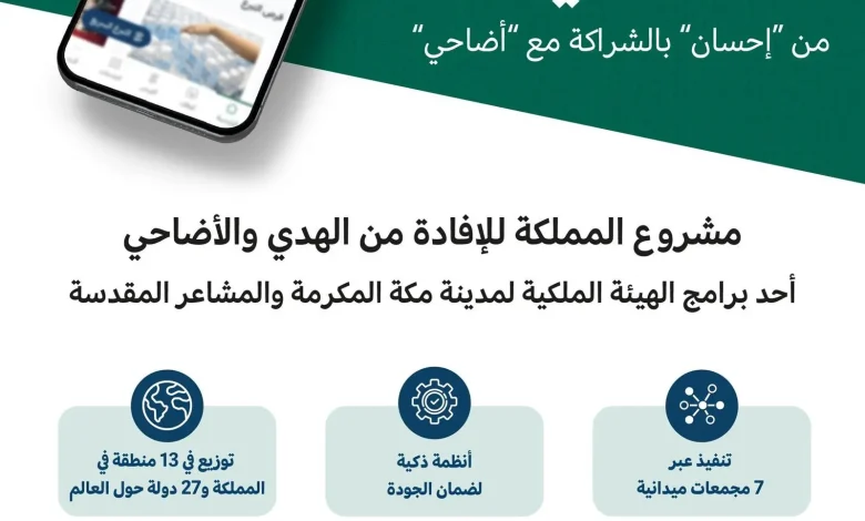 “إحسان” تواصل تقديم خدمة الأضاحي بالشراكة مع “أضاحي” عبر حلول رقمية موثوقة في حج 1446هـ