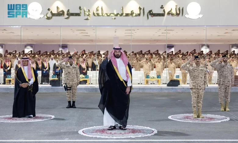 وكان في استقبال سموه لدى وصوله مقر الحفل، معالي نائب وزير الحرس الوطني الدكتور ناصر بن عبدالعزيز الداود، ومعالي رئيس الجهاز العسكري بوزارة الحرس الوطني الفريق الركن صالح بن عبدالرحمن الحربي، ومساعد الوكيل للجهاز العسكري بالقطاع الغربي اللواء الركن عبدالله بن علي التويجري، وعددٌ من القادة ورؤساء الهيئات ومديرو الإدارات، ثم عُزف السلام الملكي.