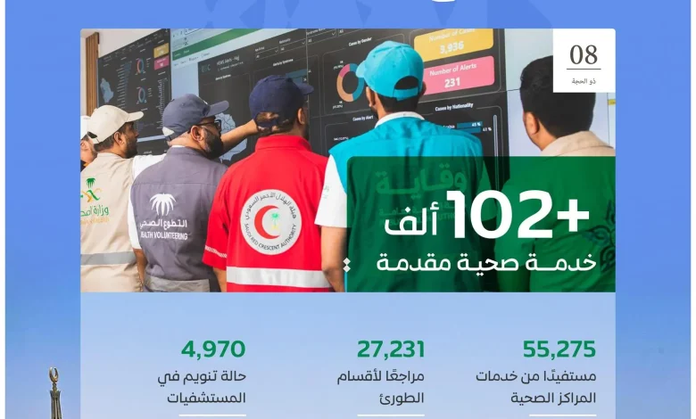 المنظومة الصحية تقدّم أكثر من 102 ألف خدمة صحية لضيوف الرحمن حتى ثامن أيام ذي الحجة
