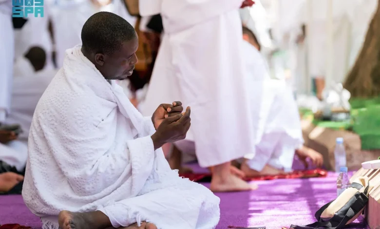 ضيوف برنامج خادم الحرمين في عشية عرفة .. أجساد تستقبل القبلة وأعين تفيض بالعبرات