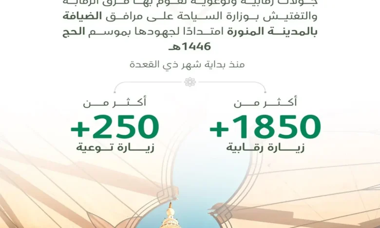 وزارة السياحة تستكمل استعداداتها لاستقبال الحجاج في المدينة المنورة بأكثر من 1850 زيارة رقابية خلال موسم الحج