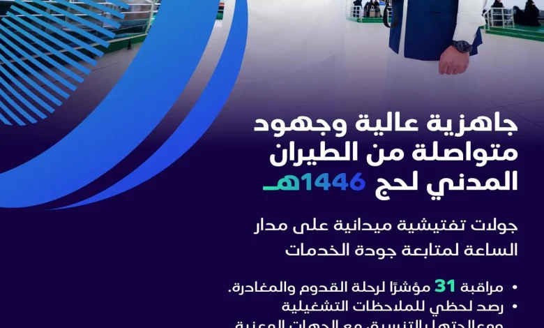 “الطيران المدني” يُخصص فرقًا رقابية لمتابعة جودة الخدمات المقدمة لضيوف الرحمن