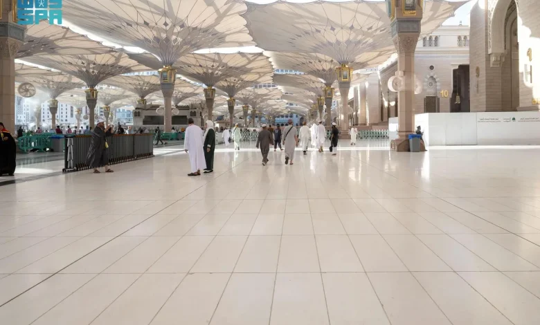 الرخام الأبيض يُعزّز توفير أجواء معتدلة للمصلين في ساحات المسجد النبوي