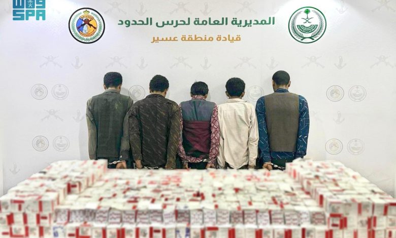 في إطار تنفيذ مهام وزارة الداخلية في مكافحة المخدرات وجهودها في متابعة نشاطات تهريبها وترويجها التي تستهدف أمن المملكة وشبابها، أحبطت المديرية العامة لحرس الحدود محاولات تهريب (2,756,806) أقراص من مادة الإمفيتامين المخدر و(1,944,230) قرصًا خاضعًا لتنظيم التداول الطبي و(4) أطنان من مادة الحشيش المخدر و(180) طنًا من نبات القات المخدر، وقبضت على مهربيها بمناطق تبوك وجازان وعسير ونجران ومكة المكرمة والمدينة المنورة والمنطقة الشرقية، وهم (1518) مخالفًا لنظام أمن الحدود من الجنسية الإثيوبية و(842) مخالفًا لنظام أمن الحدود من الجنسية اليمنية و(7) مخالفين لنظام أمن الحدود من الجنسية السودانية و(6) مخالفين لنظام أمن الحدود من الجنسية الإرترية و(3) مخالفين لنظام أمن الحدود من الجنسية الصومالية ومخالفان لنظام أمن الحدود من الجنسية الباكستانية و(33) مواطنًا.
