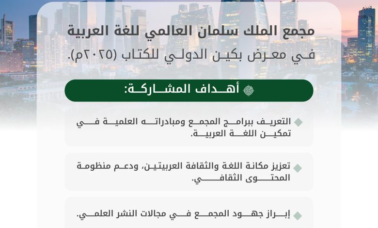 مجمع الملك سلمان العالمي للغة العربية يشارك في معرض بكين الدولي للكتاب 2025م