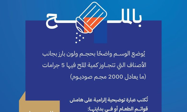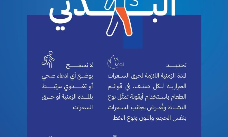 وأشارت إلى أنه ابتداءً من الأول من يوليو 2025م، ستلتزم المنشآت الغذائية بعرض معلومات تغذوية مفصّلة في قوائم الطعام، تتضمن وضع وسم “الملّاحة” بصفتها علامة استرشادية بجانب الوجبات عالية المحتوى بالملح، والإفصاح عن محتوى الكافيين في المشروبات، وتوضيح المدة الزمنية اللازمة لحرق السعرات الحرارية الناتجة عن استهلاك الوجبة.
