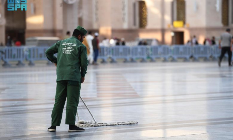 أكثر من 3 آلاف عامل يعملون على نظافة المسجد النبوي لخدمة المصلين