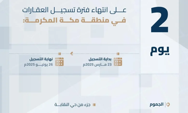 “هيئة العقار”: الخميس القادم تنتهي مدة تسجيل العقارات لـ159 قطعة عقارية بمكة المكرمة