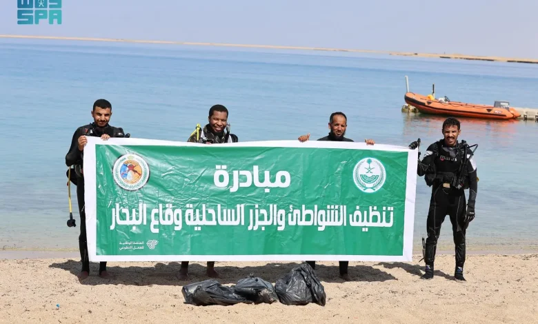 حرس الحدود ينفذ مبادرة تطوعية لتنظيف شاطئ العيقة وقاع البحر في منطقة المدينة المنورة