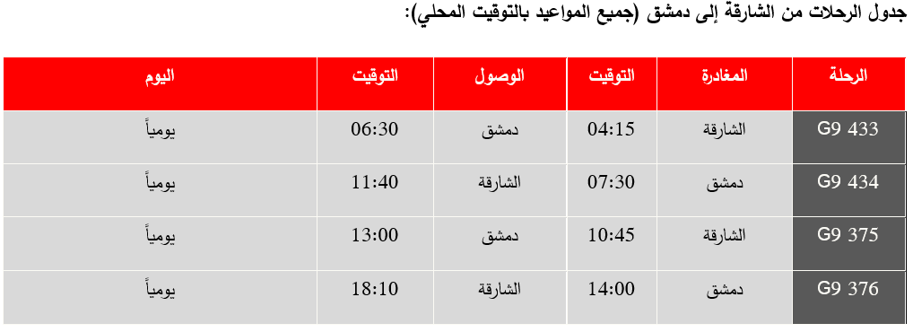بمعدل رحلتين مباشرتين يومياً بين الشارقة والعاصمة السورية"العربية للطيران"