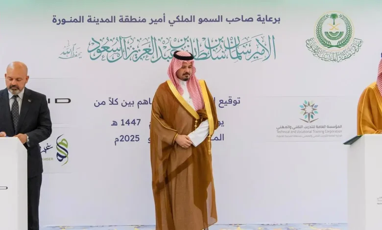 أمير منطقة المدينة المنورة يشهد توقيع اتفاقيتين لتأهيل وتوظيف خريجي التخصّصات التقنية والمهنية
