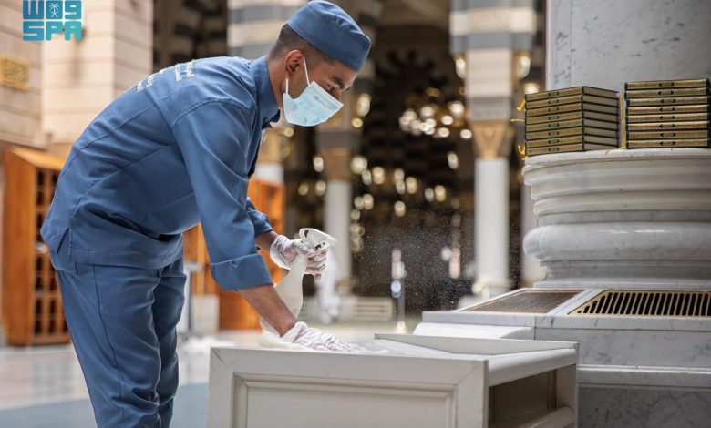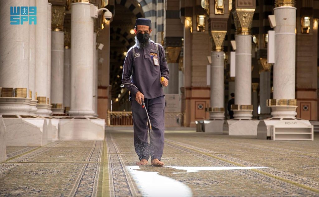 أكثر من (2,700) لتر من المعقمات لتطهير المسجد النبوي وتهيئة البيئة الإيمانية لاستقبال المصلين الجمعة