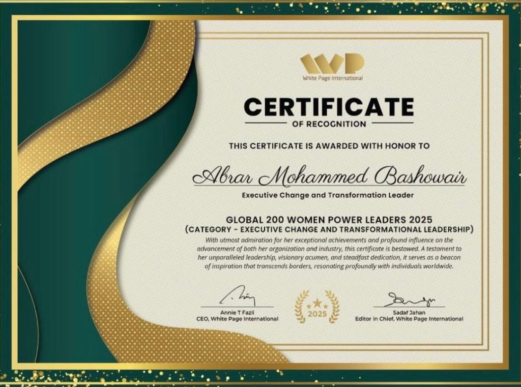 في إنجاز يعكس التميز السعودي على الساحة العالمية، حصلت المستشارة أبرار محمد باشويعر، على الاعتراف المرموق كواحدة من أبرز 200 قائدة ملهمة عالمياً لعام 2025، وذلك تقديراً لإسهاماتها الاستثنائية في مجال تمكين المنظمات وتعزيز القيمة المضافة لأصحاب المصلحة والعلامة التجارية والتحول والتميز المؤسسي.