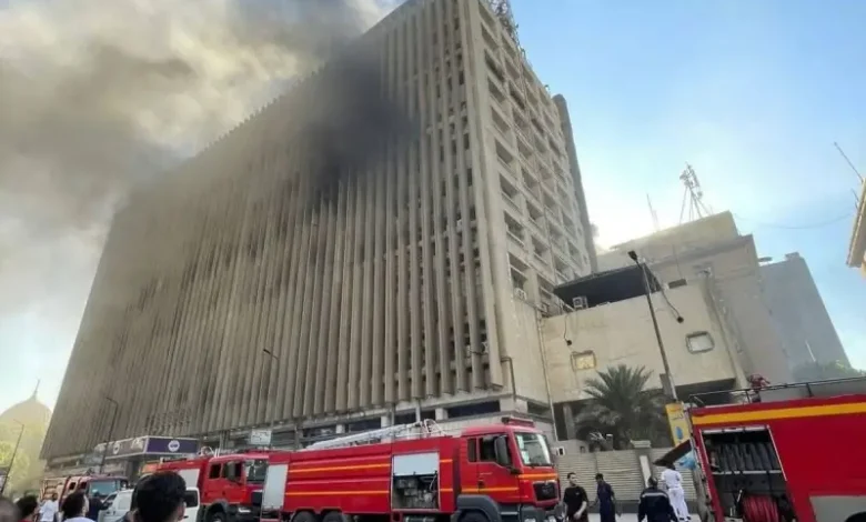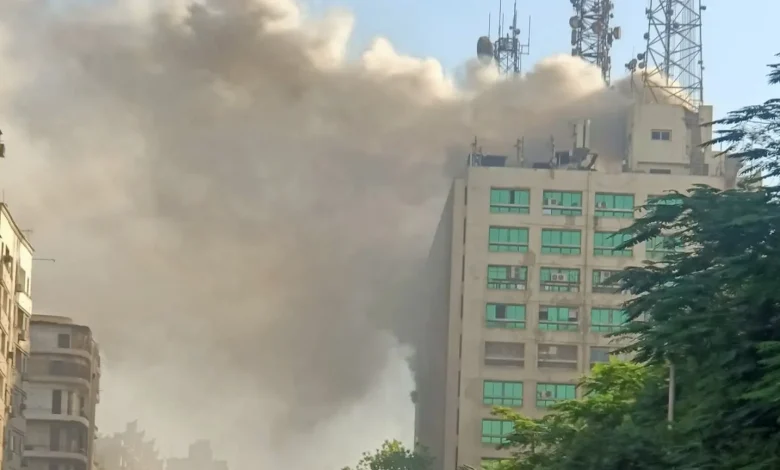 اندلاع حريق أعلى مبنى سنترال مركزي وسط القاهرة
