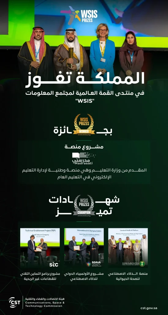 المملكة تفوز بجائزة و3 شهادات تميز في منتدى القمة العالمية لمجتمع المعلومات “WSIS”