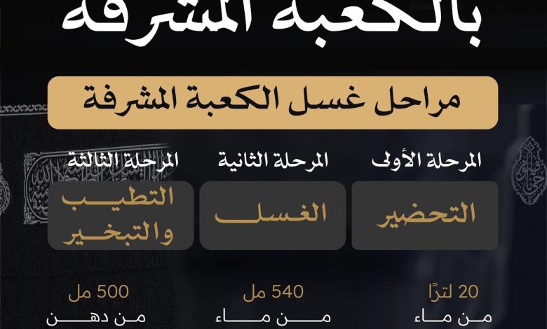 وأكّدت الهيئة العامة للعناية بشؤون المسجد الحرام والمسجد النبوي أن مراحل غسل الكعبة المشرفة تُنفذ بعناية ودقة عالية تعكس مكانة الكعبة المشرفة وبما يليق بقدسيتها ومكانتها الراسخة في قلوب المسلمين.