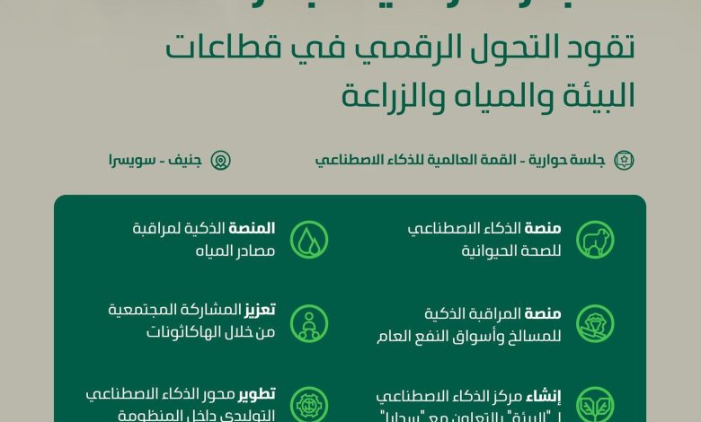 المملكة تستعرض للعالم 7 مبادرات رقمية مبتكرة أسهمت في تعزيز الصحة الحيوانية واستدامة المياه وسلامة الغذاء
