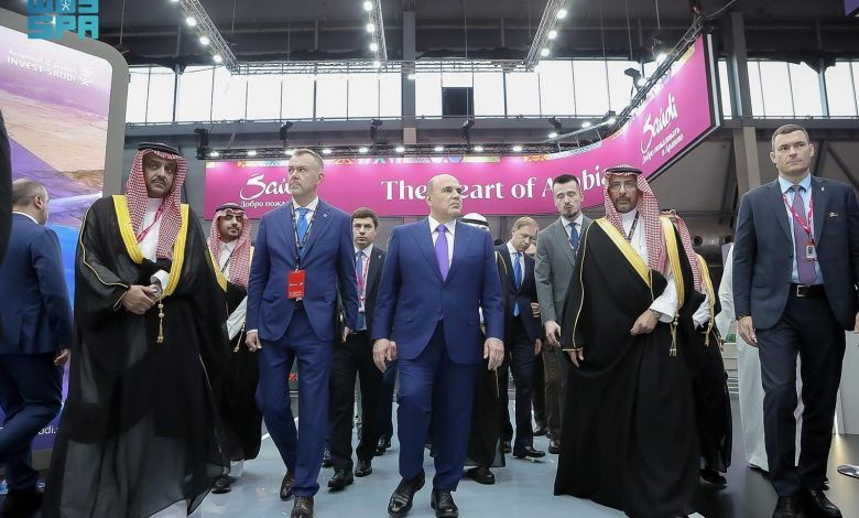 وافتتح الوزير الخريّف منتدى الحوار الصناعي الروسي- السعودي المنعقد ضمن فعاليات المعرض، وشارك في جلسة حوارية رئيسة بعنوان “القيادة التكنولوجية: قفزة صناعية”، استعرض خلالها جهود المملكة لتمكين التحوُّل الصناعي، وتحفيز الابتكار والحلول الصناعية الذكية، وتسريع تبني تقنيات الثورة الصناعية الرابعة، ورأس اجتماع الطاولة المستديرة السعودية- الروسية الذي أقيم على هامش المعرض.