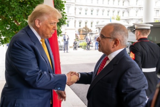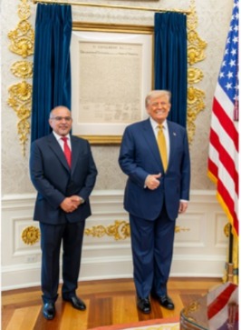 من جانبه قال فخامة الرئيس دونالد ترامب، رئيس الولايات المتحدة الأمريكية الصديقة، بأن حضرة صاحب الجلالة الملك حمد بن عيسى آل خليفة ملك البلاد المعظم حفظه الله ورعاه، شخصية تحظى بالاحترام الكبير في منطقة الشرق الأوسط وفي العالم أجمع، مرحبًا بصاحب السمو الملكي الأمير سلمان بن حمد آل خليفة ولي العهد رئيس مجلس الوزراء حفظه الله، وأعرب عن سعادته باستضافة سموه في البيت الأبيض، كما أعرب عن ترحيبه بسمو الشيخ عيسى بن سلمان بن حمد آل خليفة وزير ديوان رئيس مجلس الوزراء.