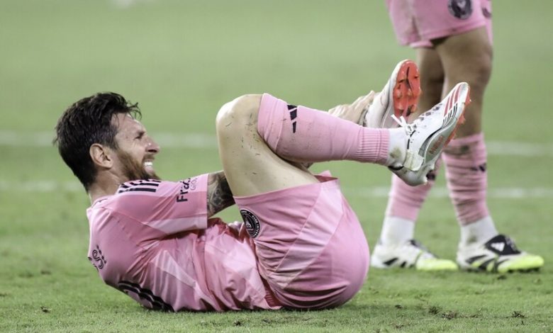 وسقط ميسي داخل منطقة الجزاء قبل نهاية المباراة التي جرت فجر أمس الخميس، في الدوري الأمريكي لكرة القدم (MLS)، بعد اشتباك مع أحد مدافعي سينسيناتي، حيث بدت عليه علامات إعياء قبل أن يستكمل المواجهة.