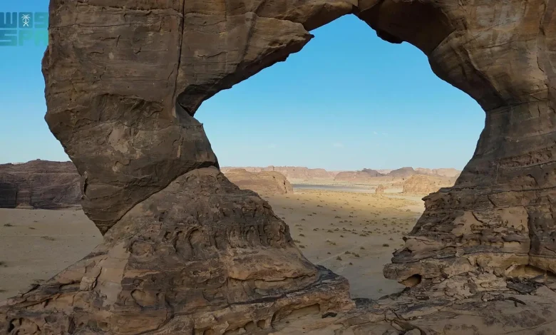 ومن بين هذه التكوينات، تبرز فتحات صخرية نادرة أوجدتها التعرية في أحد النتوءات الرملية، مُشكّلة إطارًا طبيعيًا يطل على جبال العُلا ووديانها ونخيلها، في مشهد يأسر الناظر بجماله وتناسقه، وتتنوّع هذه التشكيلات بين الأقواس الصخرية، والفتحات الطبيعية، والجروف الناتئة، والتكوينات الرملية المتقنة، التي تجسّد روعة التكوين الجيولوجي وتفرد المشهد الطبيعي للمحافظة.