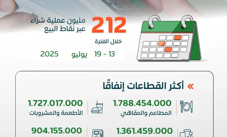 أكثر من 212 مليون عملية نقاط بيع في المملكة بقيمة تجاوزت 12 مليار ريال في أسبوع