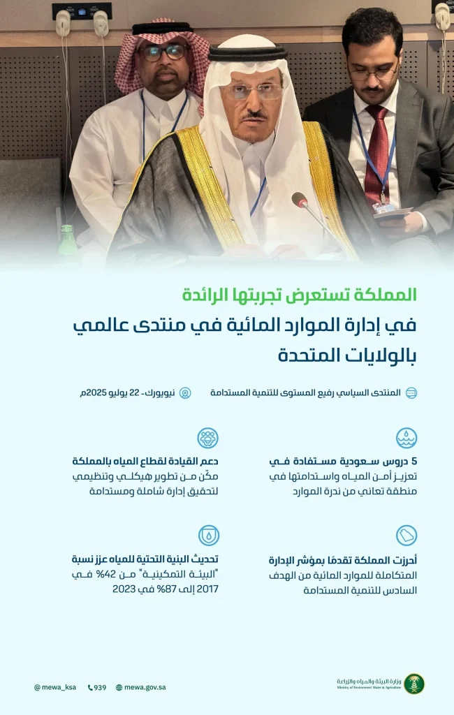 المملكة تُشارك تجربتها في إدارة الموارد المائية على هامش أعمال المنتدى السياسي الرفيع المستوى للتنمية المستدامة في نيويورك
