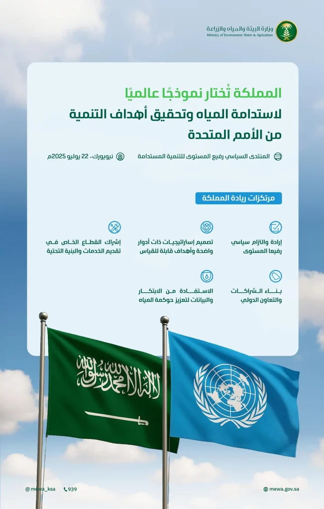 المملكة تُختار نموذجًا عالميًّا لاستدامة المياه وتحقيق أهداف التنمية من الأمم المتحدة