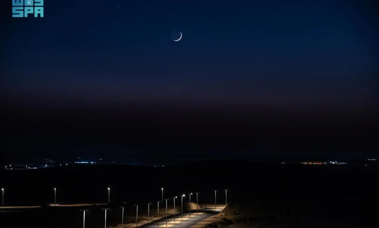 وظهر الهلال النحيل منخفضًا في الأفق الغربي بعد غروب الشمس، إلى جانب نجم “قلب الأسد”، في منظر جذّاب يمكن مشاهدته بالعين المجردة.