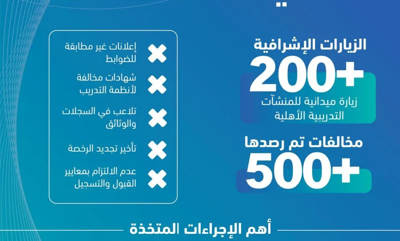 مؤسسة التدريب التقني ترصد أكثر من ( 500 ) مخالفة في منشآت التدريب الأهلية في عام 2024م