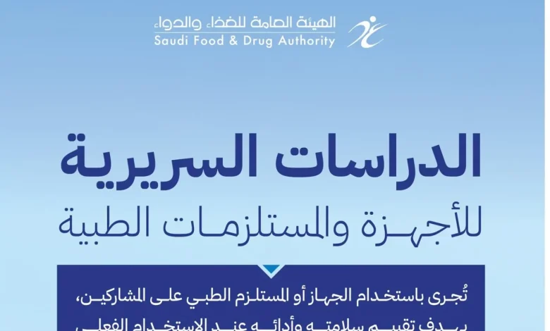 تواصل الهيئة العامة للغذاء والدواء تنظيم الدراسات السريرية للأجهزة والمستلزمات الطبية، بوصفها من المتطلبات الأساسية لتقييم السلامة والأداء الفعلي لتلك الأجهزة عند الاستخدام، وذلك في إطار دورها الرقابي والتنظيمي، وسعيًا إلى تعزيز مكانتها ضمن الجهات الرقابية الرائدة عالميًّا.
