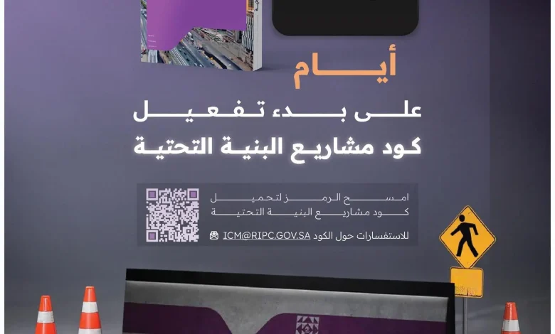 أوضح مركز مشاريع البنية التحتية بمنطقة الرياض أن “كود مشاريع البنية التحتية” سيدخل حيز التنفيذ بعد (10) أيام، بتاريخ 2025/8/7م، الذي يهدف إلى وضع معايير موحدة تسهم في رفع جودة وسلامة أعمال البنية التحتية التي تشمل المشاريع المتعلقة بخدمات الاتصالات، والطاقة، والمياه، والصرف الصحي، والطرق، ونحوها، ويشمل ذلك مشاريع الجهات الحكومية والخاصة، والمشروعات الكبرى، إذا كانت مرتبطة أو تتقاطع مع أعمال مشاريع البنية التحتية، وتعزيز تنسيق وتكامل الجهود بين جميع الجهات ذات العلاقة.
