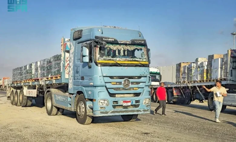 عبور 6 شاحنات إغاثية سعودية جديدة إلى قطاع غزة مقدمة من مركز الملك سلمان للإغاثة