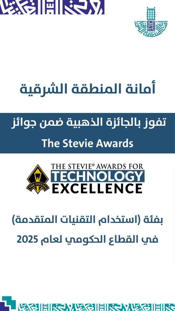في إنجاز دولي .. أمانة المنطقة الشرقية تحصد المركز الذهبي في جوائز “Stevie Awards” العالمية