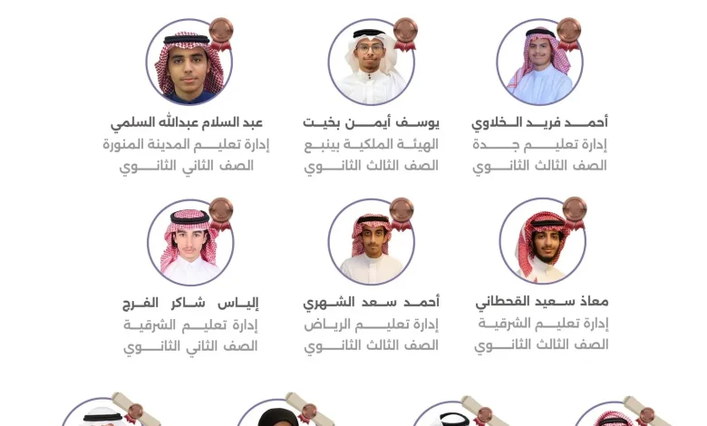 وحصل عبدالله طارق العامر، ومحمد أحمد الغامدي من تعليم الشرقية، وفاطمة حسن بوعلي من تعليم الأحساء، ويوسف فريد الخلاوي من تعليم جدة على شهادات التقدير الأربع.