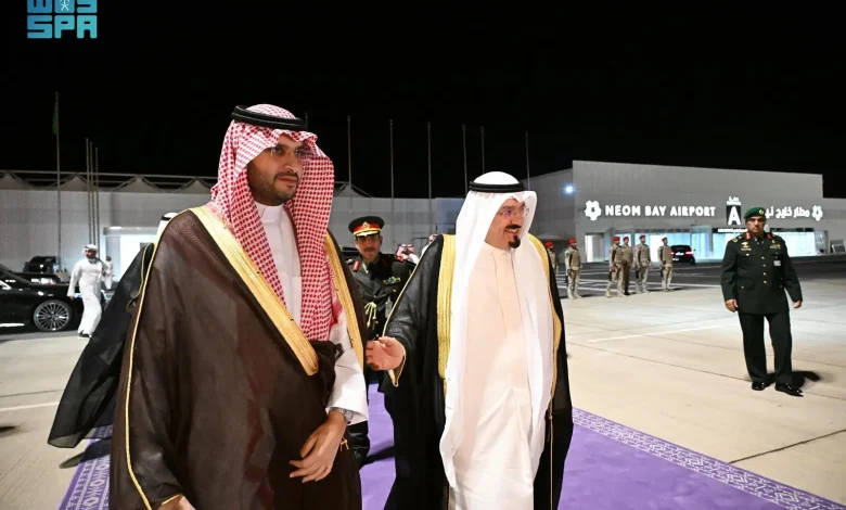 وكان سمو الشيخ أحمد عبدالله الأحمد الصباح، رئيس مجلس الوزراء بدولة الكويت، قد وصل إلى نيوم في وقت سابق اليوم، حيث كان في استقباله صاحب السمو الملكي الأمير تركي بن محمد بن فهد بن عبدالعزيز وزير الدولة عضو مجلس الوزراء، وصاحب السمو الأمير سلطان بن سعد بن خالد سفير خادم الحرمين الشريفين لدى دولة الكويت، والقنصل العام لدولة الكويت في جدة يوسف التنيب، والقائم بالأعمال بالإنابة في سفارة دولة الكويت بالمملكة حمد السلوم، والملحق الدبلوماسي بالقنصلية الكويتية في جدة ظافر المطيري.