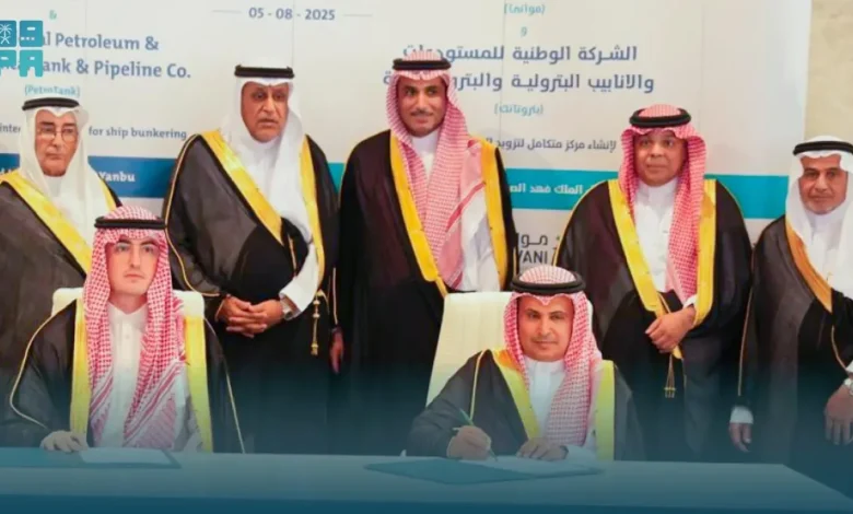 وقّعت الهيئة العامة للموانئ (موانئ) والشركة الوطنية للمستودعات والأنابيب البترولية والبتروكيميائية “بتروتانك” عقد تأجير أرض لإنشاء مركز متكامل لتزويد السفن بالوقود بميناء الملك فهد الصناعي بينبع على مساحة تصل إلى (110,700) متر مربع، بما يمثل مشروعًا إستراتيجيًا نوعيًا بقيمة استثمارية إجمالية تبلغ (500) مليون ريال لمدة (20) عامًا.