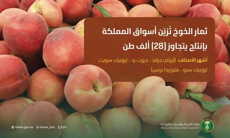 ثمار الخوخ تُزيّن أسواق المملكة وإنتاجها المحلي يتجاوز (28) ألف طن