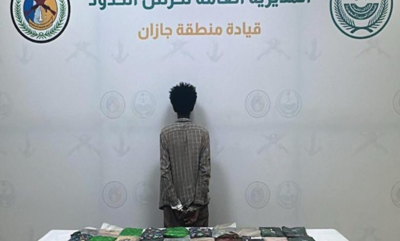 حرس الحدود بمنطقة جازان يقبض على مخالف لنظام أمن الحدود لتهريبه (34.6) كيلوجرامًا من مادة الحشيش المخدر