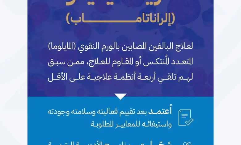 “الغذاء والدواء” تعتمد تسجيل مستحضر “الریكسیفیو” لعلاج البالغين المصابين بالورم النقوي المتعدد