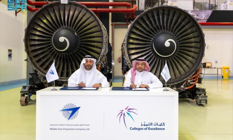 وقّعت شركة كليات التميّز اليوم مذكرة تفاهم مع شركة الشرق الأوسط لمحركات الطائرات المحدودة؛ بهدف تعزيز التعاون المشترك في مجالات تدريب وتأهيل الكوادر الوطنية وتوظيف خريجي الكلية التقنية العالمية لعلوم الطيران، وذلك في إطار الجهود الرامية إلى دعم توطين الوظائف في القطاعات الحيوية بالمملكة.