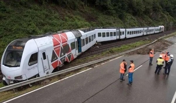 وأظهرت لقطات عددًا من العربات وقد تكدست فوق بعضها على خط السكة الحديدية في منطقة ريفية، بينما كان حريق في الأعشاب ودخان يتصاعد بجانب موقع الحادث.