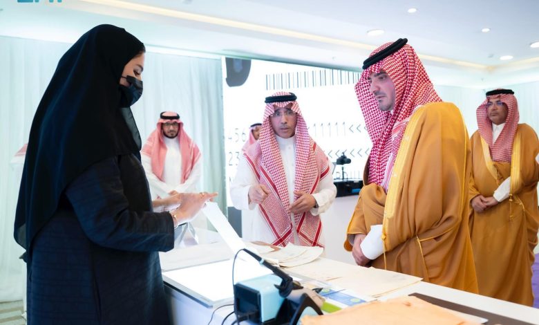 واطّلع سموه على آلية ترميم ومعالجة الوثائق القديمة التي تعرضت للتلف نتيجة تقادمها أو تعرضها لعوامل مناخية أو طبيعية مختلفة، وذلك باستخدام أحدث الوسائل التقنية والمعدات الخاصة.