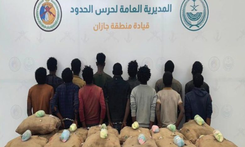 حرس الحدود بجازان يقبض على (13) مخالفًا لنظام أمن الحدود لتهريبهم (260) كيلوجرامًا من نبات القات المخدر