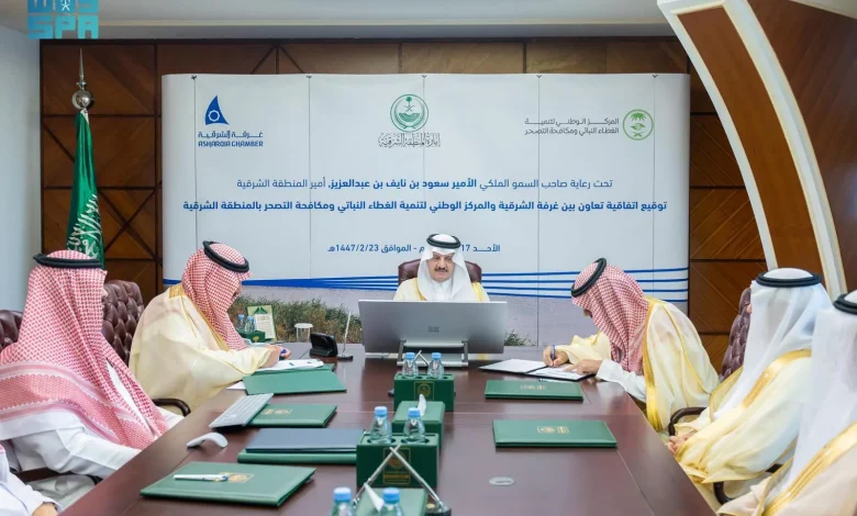 أمير المنطقة الشرقية يشهد توقيع مذكرة تفاهم بين فرع المركز الوطني لتنمية الغطاء النباتي وغرفة الشرقية