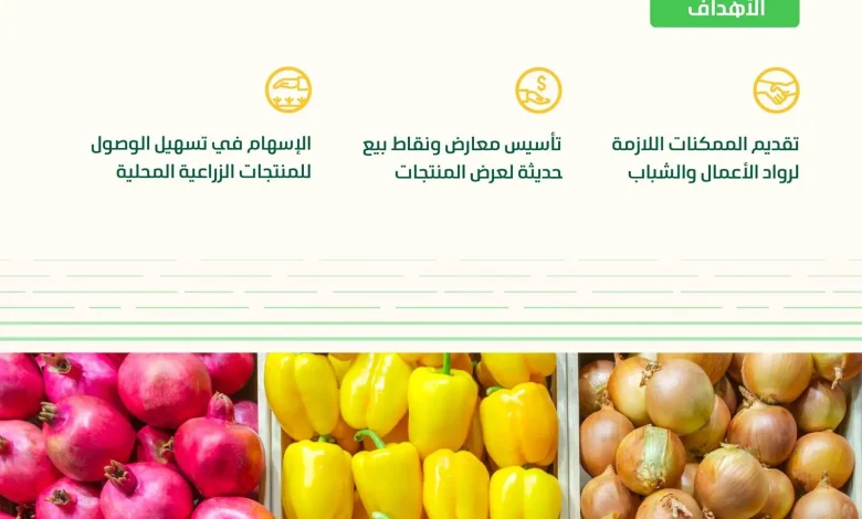 وأوضحت الوزارة، أن المشروع يعكس التوجه الإستراتيجي للمملكة في تحقيق التنمية المستدامة في مجال التسويق الزراعي، من خلال تقديم الممكنات اللازمة لرواد الأعمال والشباب، وتأسيس المعارض ونقاط البيع الحديثة، وربط المنتجات الزراعية بالمتاجر الإلكترونية، مشيرةً إلى أن المشروع يستهدف تدشين (150) منفذًا في أسواق النفع العام وخارجها بمختلف المناطق في مجالات بيع الخضار والفواكه، والمنتجات الحيوانية والزراعية، والعسل، والورد، والقهوة.