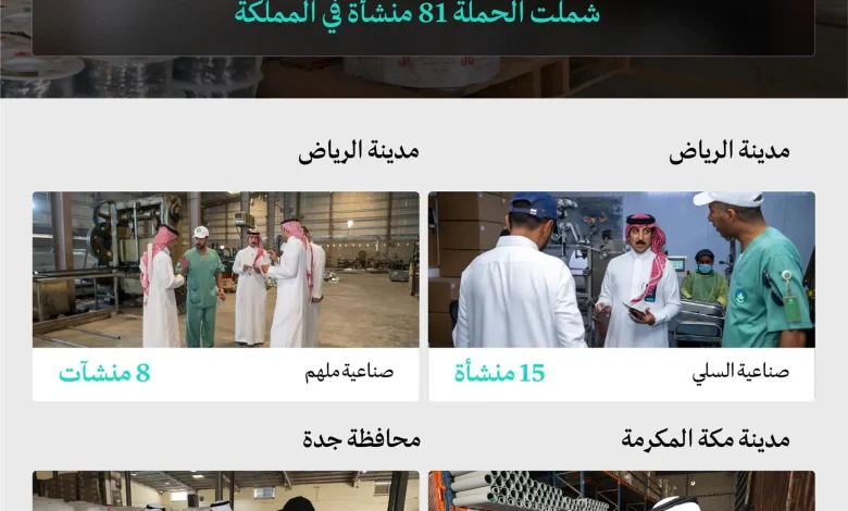نفَّذت وزارة الصناعة والثروة المعدنية ووزارة البلديات والإسكان حملةً رقابيةً مشتركةً على عدد من المنشآت المخالفة الواقعة خارج المدن الصناعية؛ شملت (81) منشأة في ستة مواقع بمدن الرياض، ومكة المكرمة، والدمام، ومحافظة جدة.