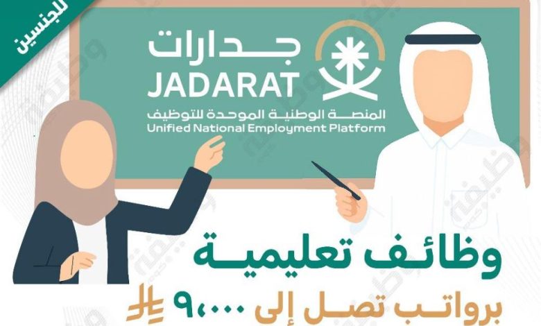 منصة جدارات تعلن عن توفر أكثر من 199 وظيفة تعليمية برواتب تصل إلى 9,000 ريال